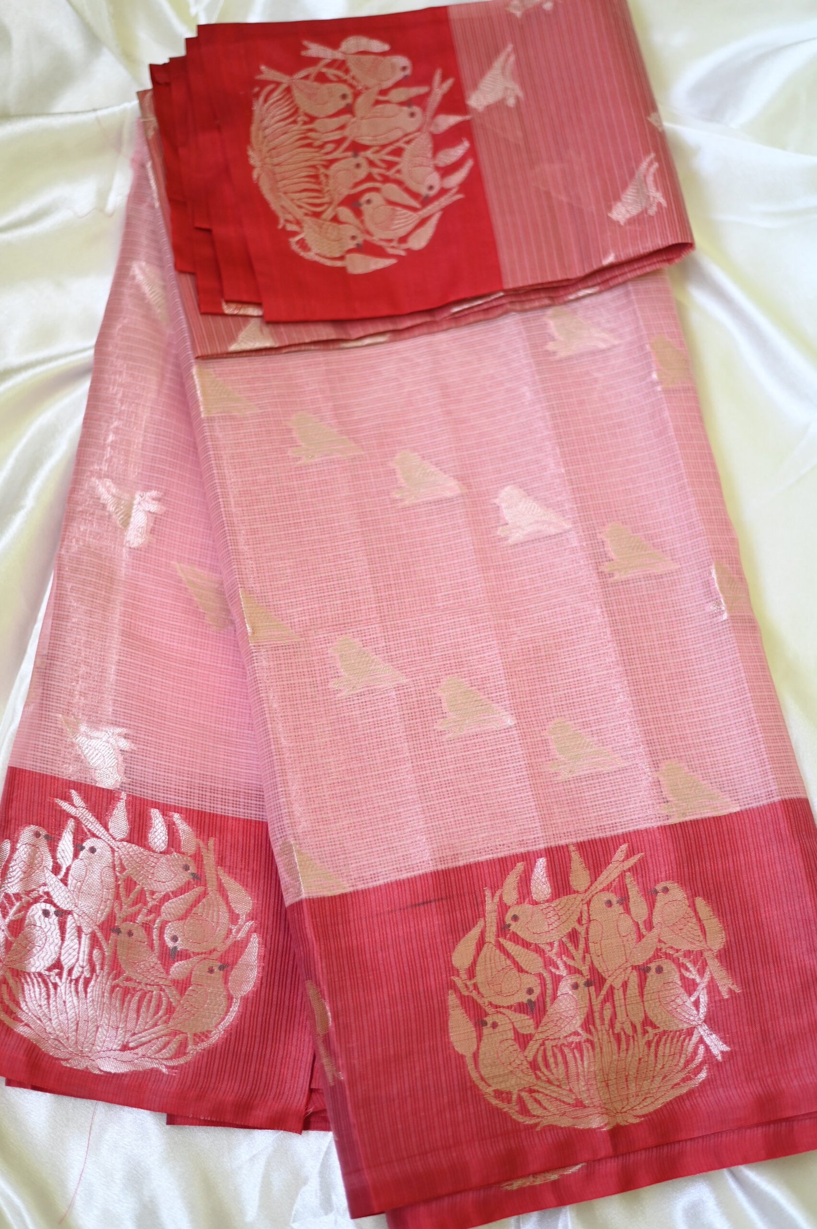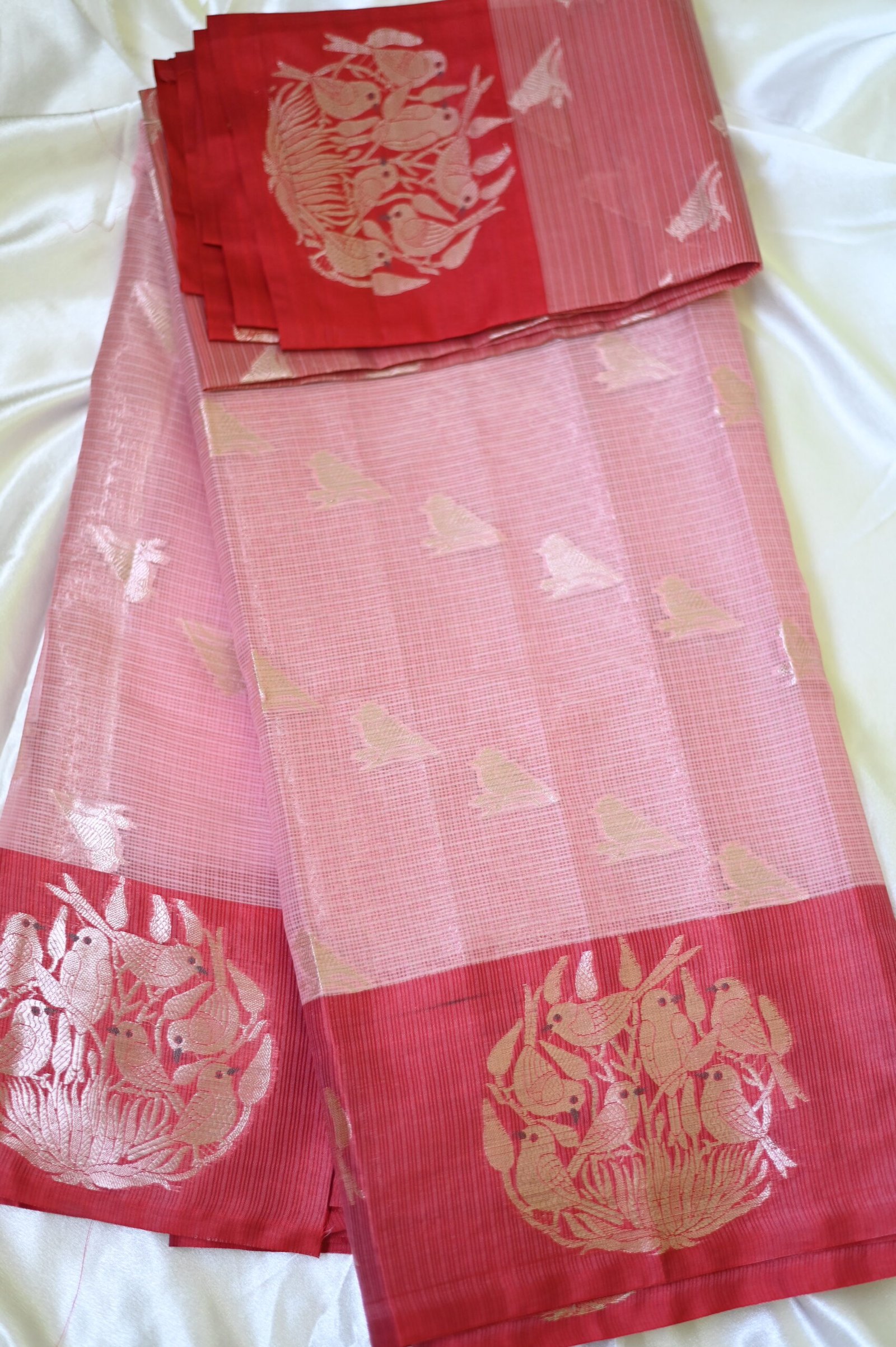 Step into timeless elegance with our benarasi kotasaree, a perfect blend of tradition and grace. This saree features lightweight Kota fabric adorned with intricate Benarasi weaving, making it an ideal choice for weddings, festivals, or special gatherings. The shimmering zari work reflects the artistry of our skilled weavers, giving you a royal yet comfortable drape.