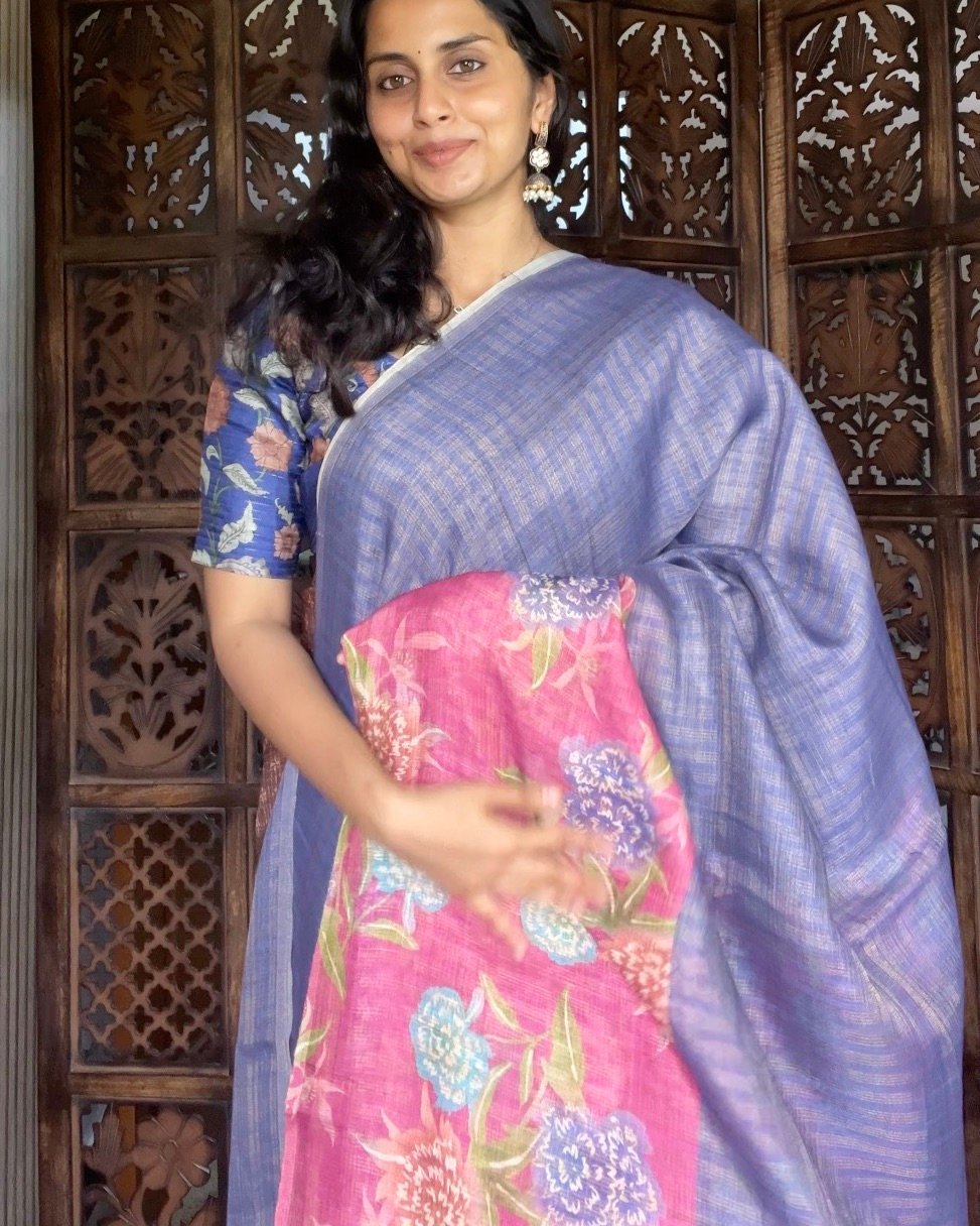 Available exclusively on Divara, this saree combines classic charm with contemporary flair.