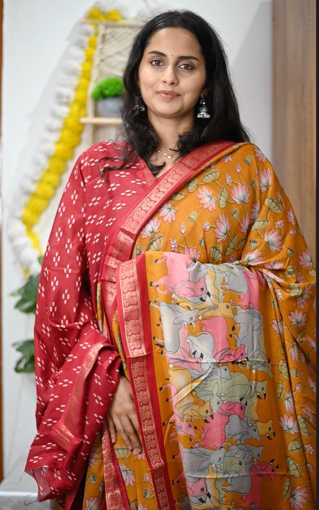 Experience authentic Indian tradition blended with modern simplicity only at divara. Add this classic mangalgiri soft cotton saree to your wardrobe and feel the charm of heritage with every wear.