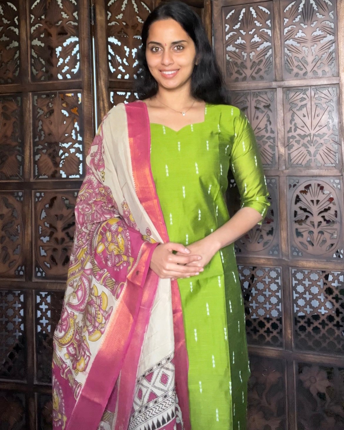Perfect for festive occasions, family gatherings, and traditional celebrations, this raw silk Kurt with chennuri silk dupatta offers both comfort and style. Designed with attention to detail, it reflects the quality and authenticity that divarais known for.