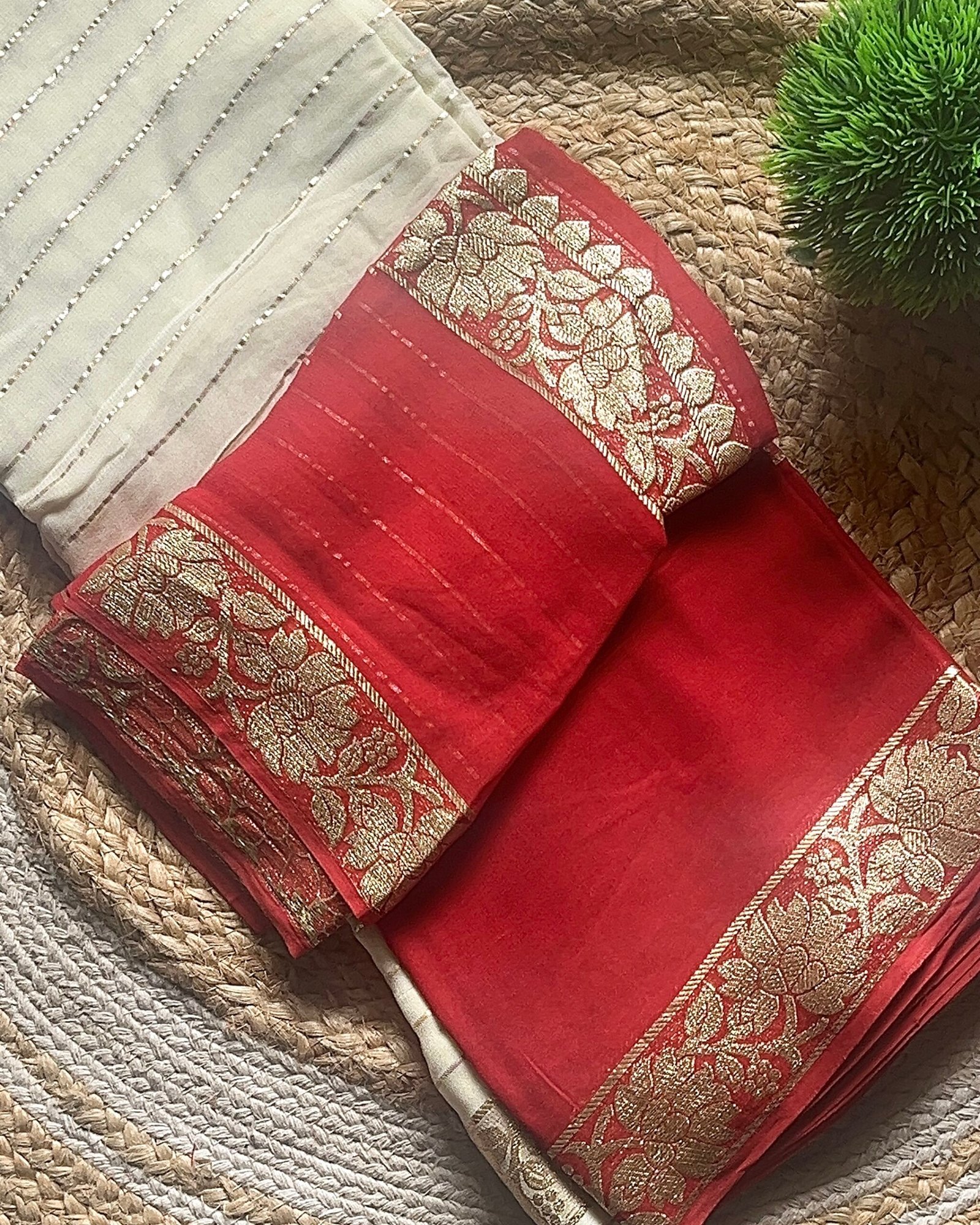 Elevate your ethnic wardrobe with our elegant semi georgette saree, designed to offer a graceful drape and lightweight comfort for all occasions. The soft texture and flowy silhouette make it ideal for festive events, parties, and formal gatherings.