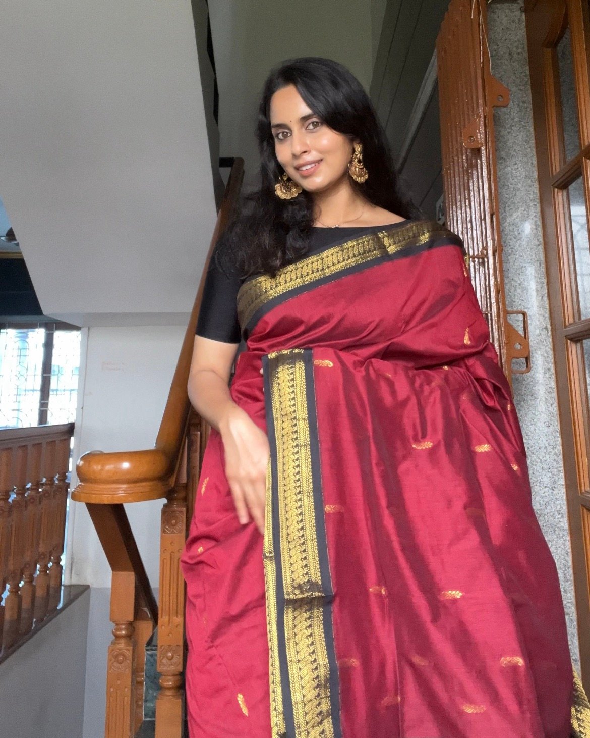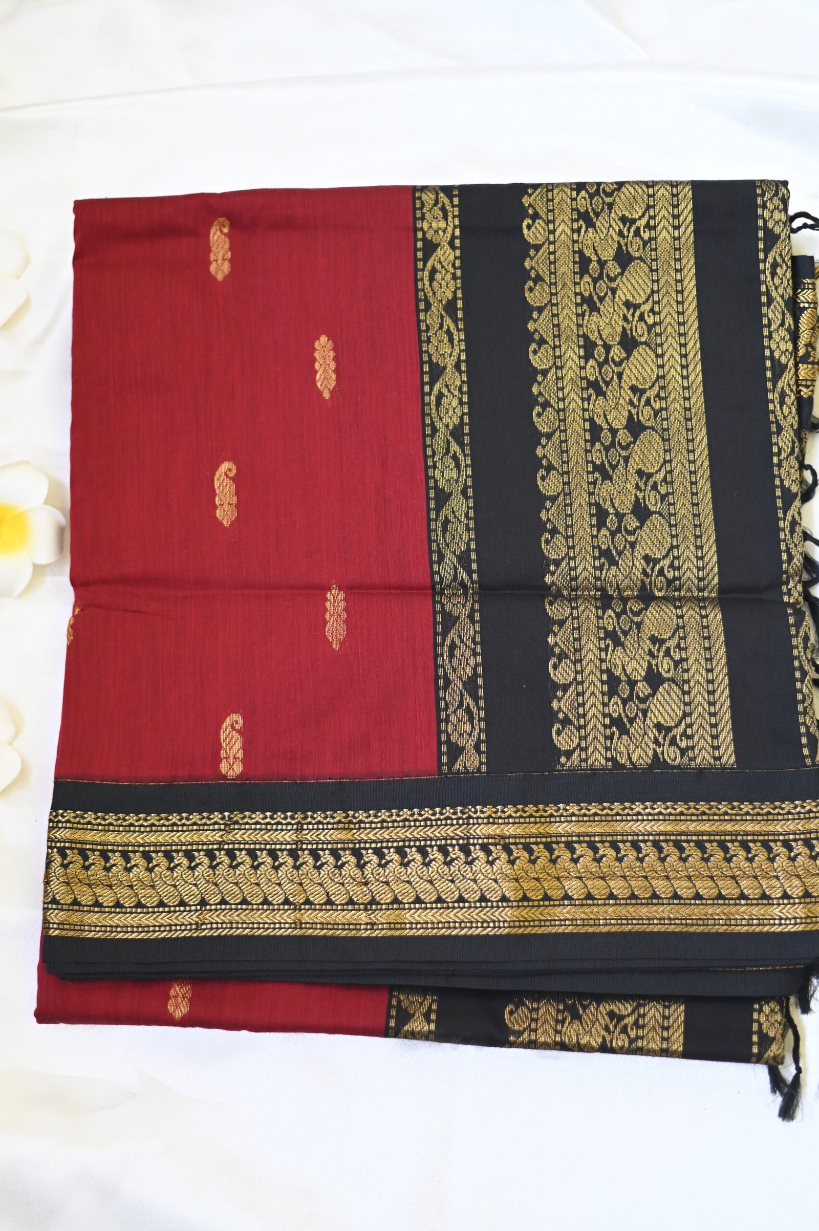 kalyani cotton saree-maroon&black