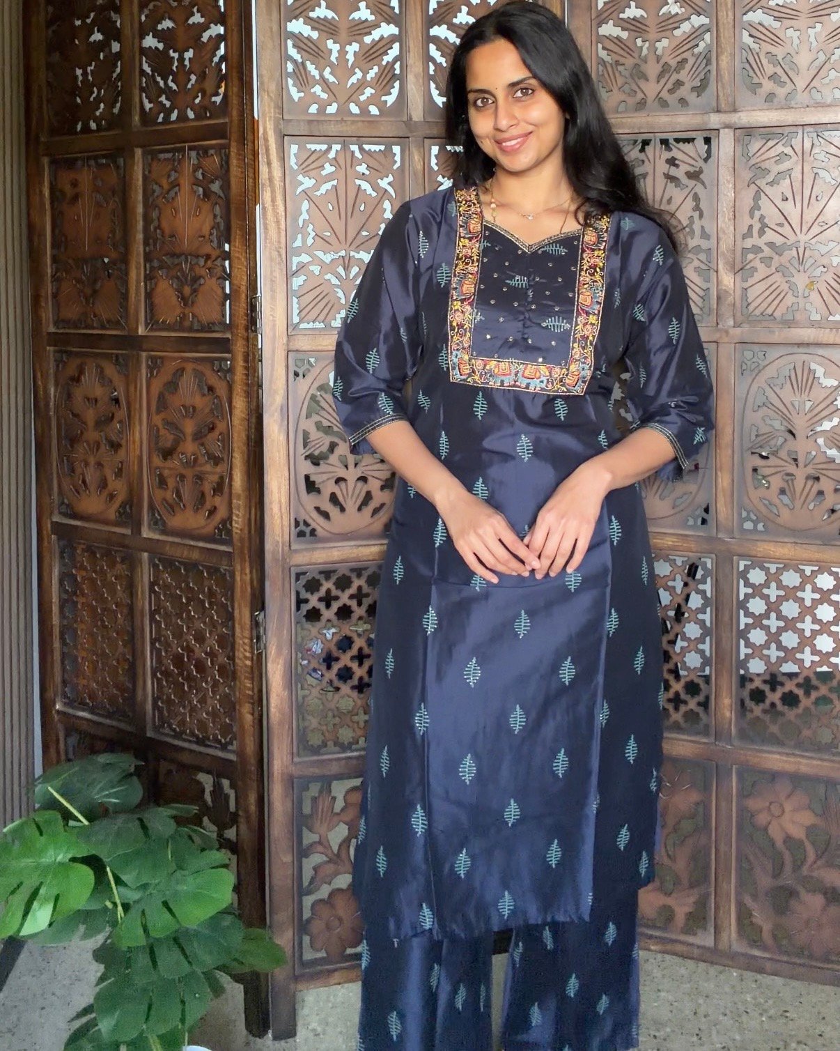 The versatile kurti and pant set is easy to style with minimal accessories and footwear, making it a must-have addition to your collection. Exclusively available at divara, this outfit blends traditional charm with contemporary fashion effortlessly.