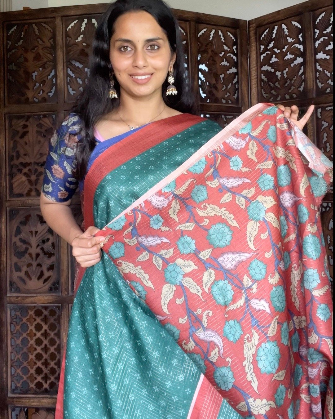 Add effortless elegance to your wardrobe with the Semi Tussar Tissue saree — a perfect fusion of tussar silk’s richness and tissue fabric’s subtle shine. Whether you’re dressing up for a festive occasion or a casual gathering, the Semi Tussar Tissue saree offers the perfect balance of style and comfort.