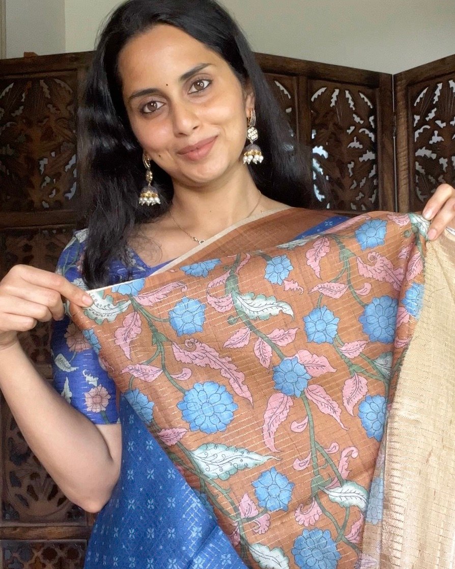 Add effortless elegance to your wardrobe with the Semi Tussar Tissue saree — a perfect fusion of tussar silk’s richness and tissue fabric’s subtle shine. Whether you’re dressing up for a festive occasion or a casual gathering, the Semi Tussar Tissue saree offers the perfect balance of style and comfort.